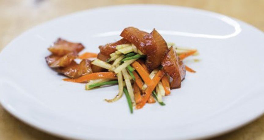 סלט חצילים מטוגנים עם סויה ועלים ירוקים